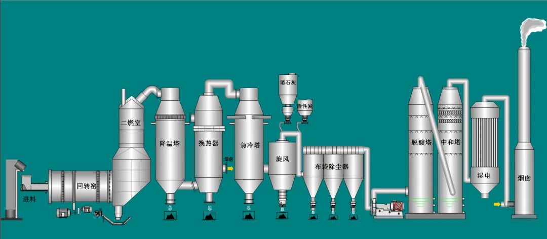 智慧焚燒: 焚燒車間采用“回轉窯焚燒爐+煙氣處理系統(tǒng)”先進工藝,年處置能力3萬噸。物料經回轉窯充分焚燒,產生的煙氣歷經急冷、除塵、脫酸中和等多重凈化關卡,確保達標排放。