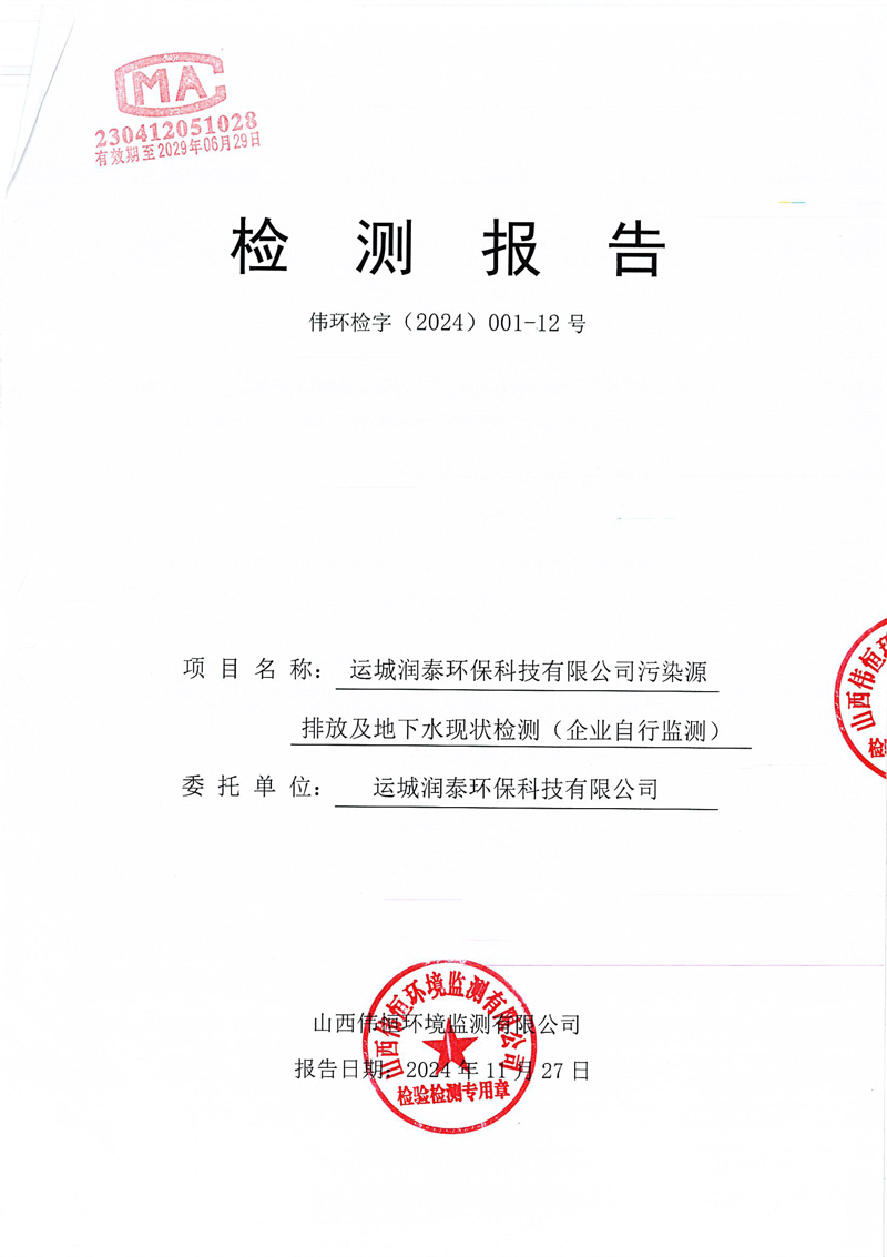 2024年潤泰環(huán)保十一月份報告